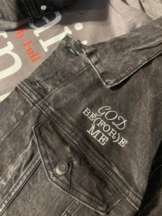 God Be(FOR)e Me Iconic Denim Jacket with Embroidered Lettering